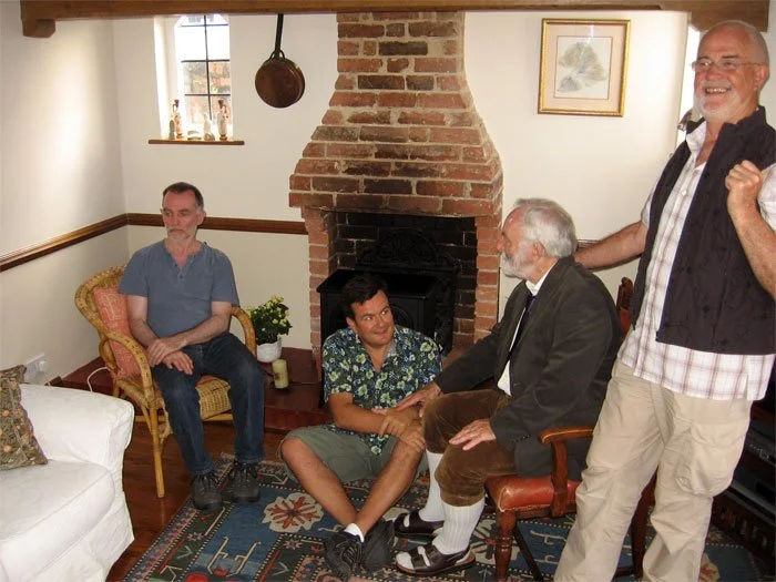 We also took the opportunity to ‘recreate’ in the sitting room the original group photograph had marked the visit of the young Gavin Arthur to Carpenter there in 1924. With Lionel playing Carpenter and Edward sitting on the floor as Gavin, John stood in for George Merrill and Lynn for Ted Inigan.